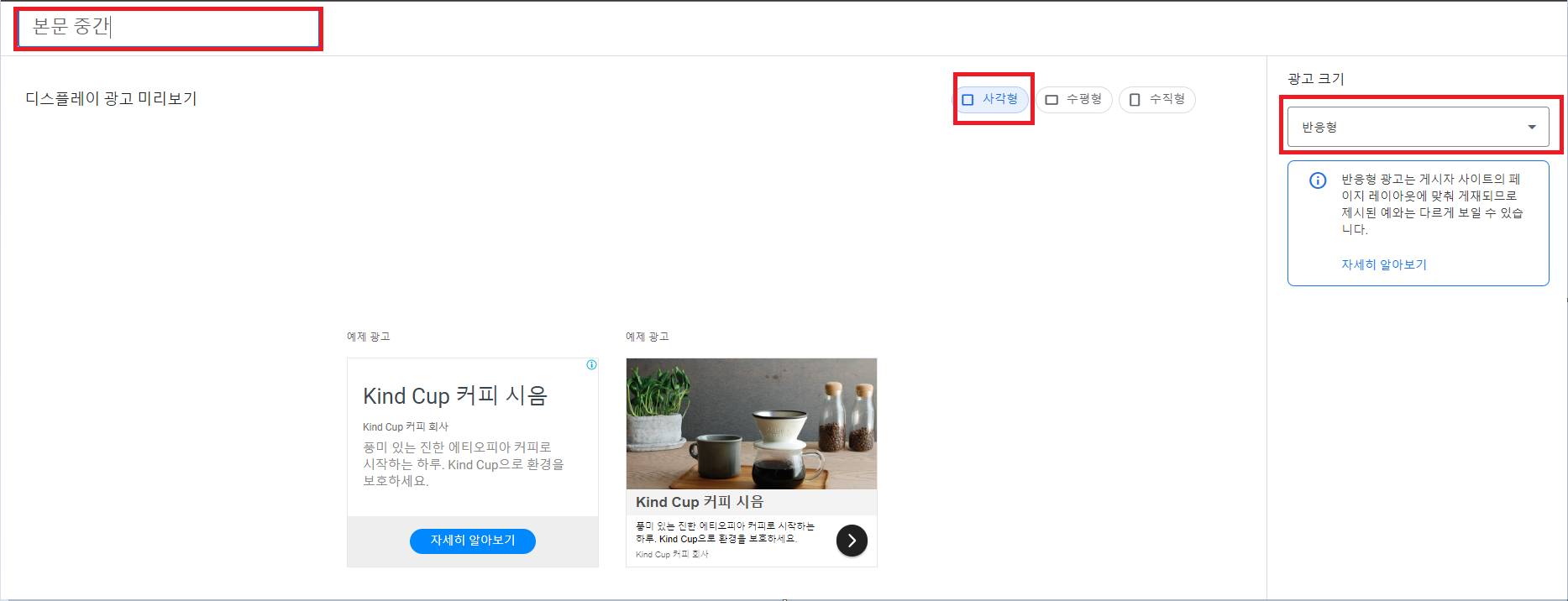 광고 형식: 사격형 or 수평형
