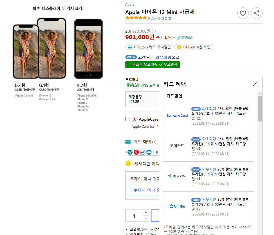 지금 쿠팡에서 128GB가 90만원대에 25%까지 할인이 된다니..