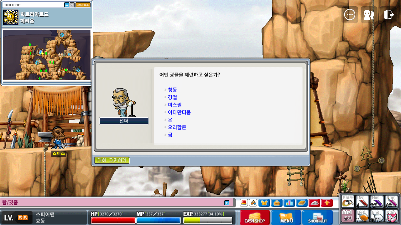 광물을 제련하기 위해선 페리온의 선더에게 각종 광물의 원석을 10개씩 가져가야 합니다.40레벨까지 캐릭터를 육성하다 보면 어느 정도 광물들이 모여있지만 금이나 은의 원석은광물로 제련하기에 부족한 경우가 많습니다!이런 경우에는 거래가 활발한 디스코드나 환승구역에서 구매하시는 것을 추천드려요!