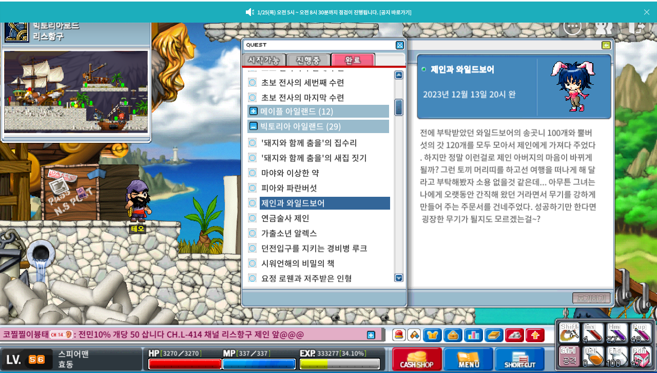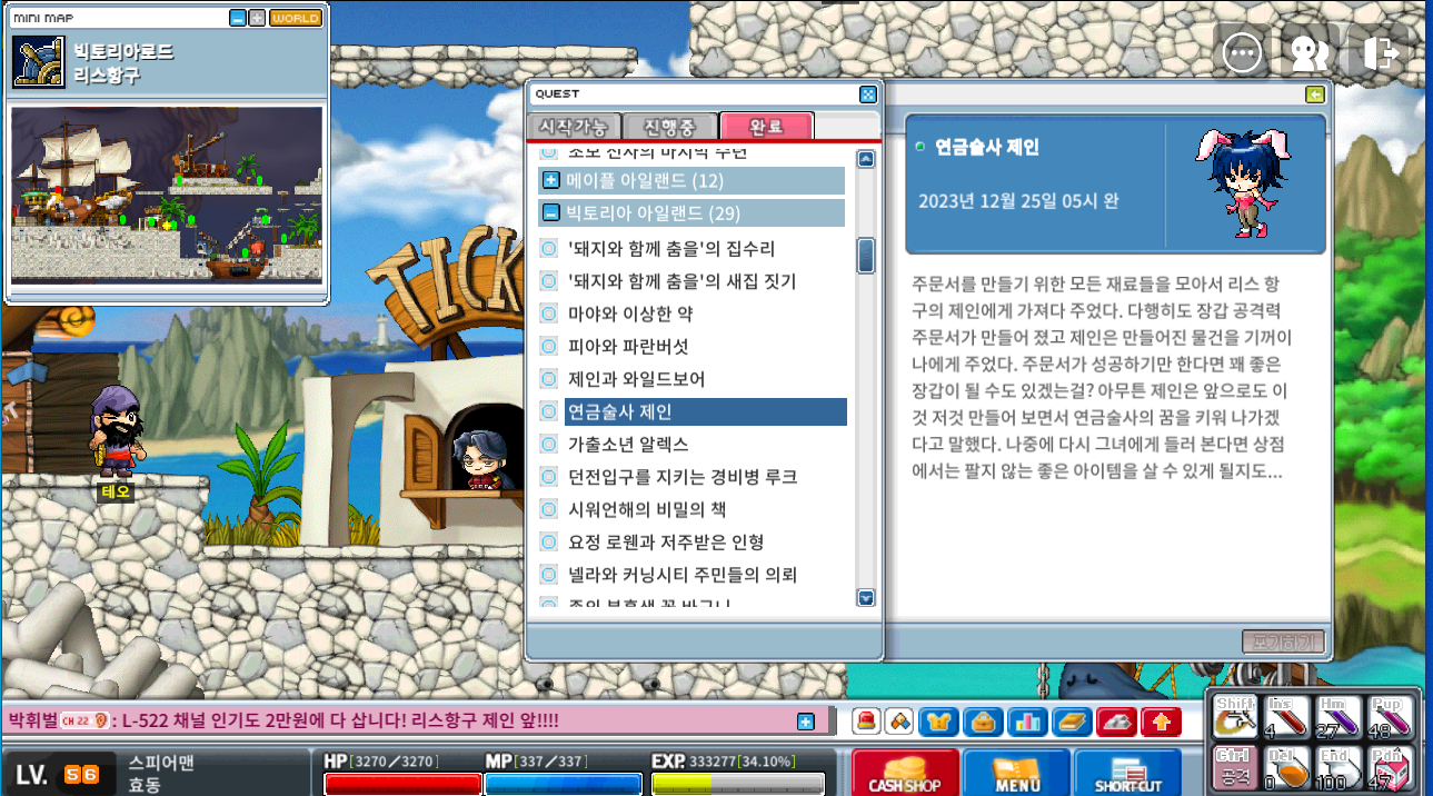 퀘스트 보상으로 많은 메소도 벌고 사냥에 필요한 물약도 사게 구매할 수 있으니 모두 꼭 깨시길 바랄게요!